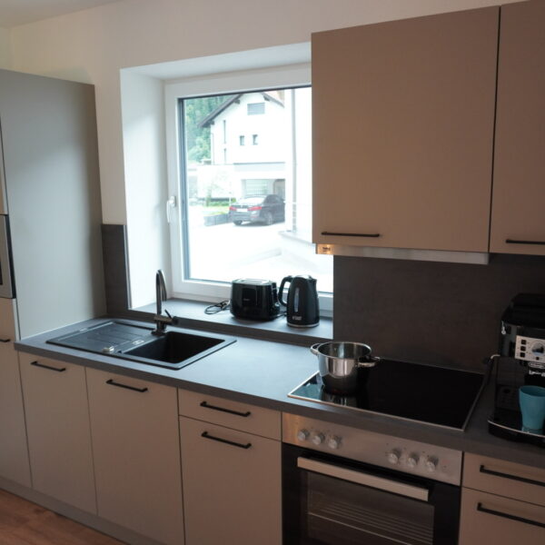 Die Wohnung empfängt euch mit einem offenen, lichtdurchfluteten Wohn- und Essbereich. Die voll ausgestattete Küche, der gemütliche Essbereich und die ausziehbare Couch laden zum gemeinsamen Kochen, Essen und Entspannen ein. Alles Notwendige – Geschirr, Toaster, Spülmaschine, TV und ein Kaffeevollautomat – ist vorhanden, um euren Aufenthalt so komfortabel wie möglich zu gestalten.